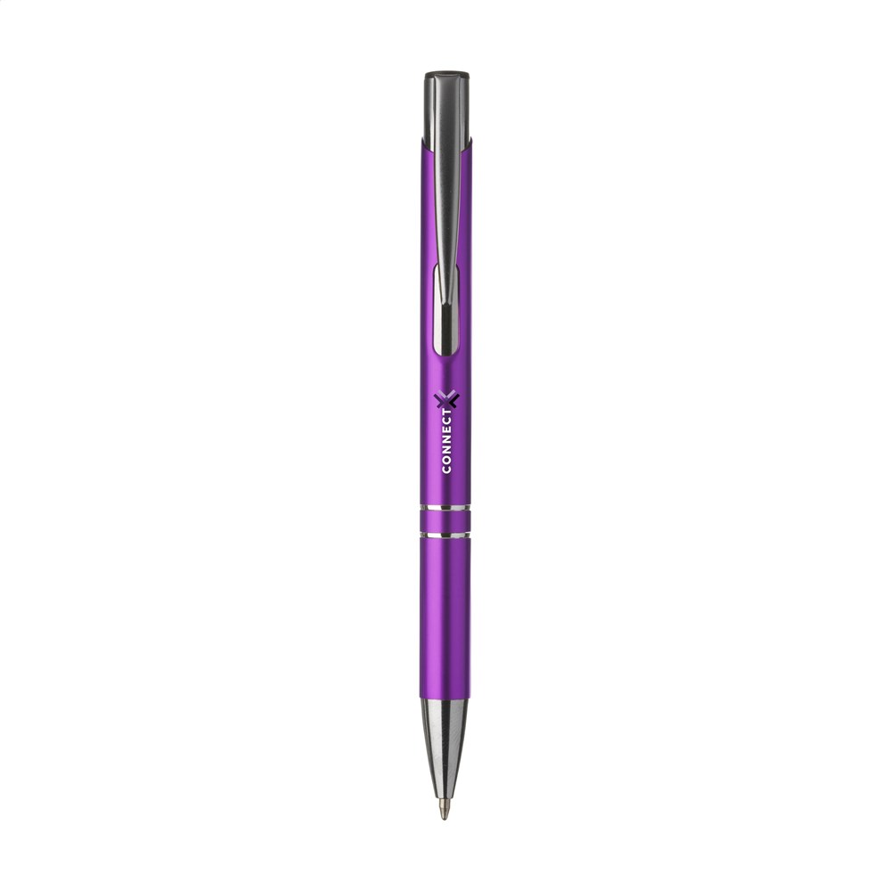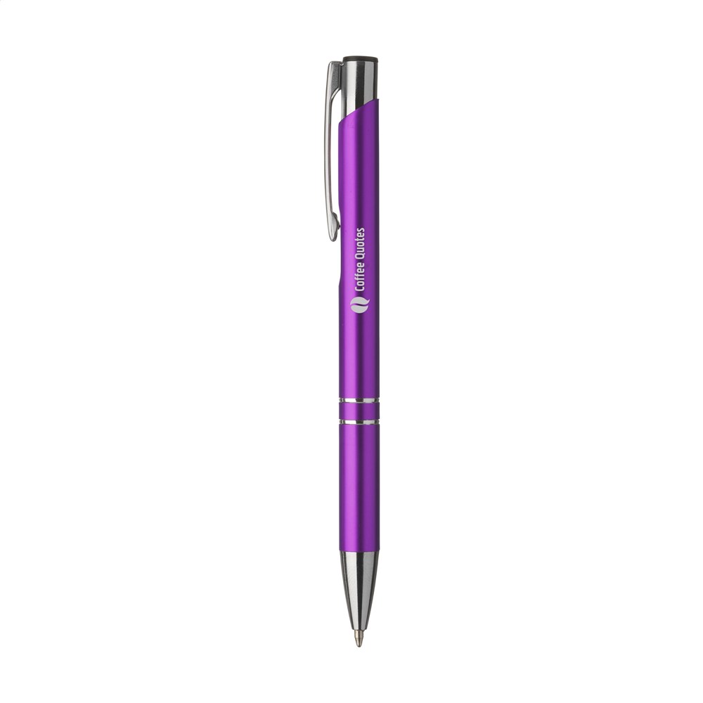 Blauwschrijvende óf zwartschrijvende, aluminium balpen met matgekleurde houder in metallic look en metalen clip.Drukoppervlak: