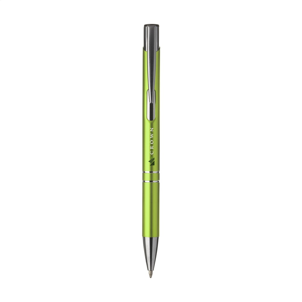 Blauwschrijvende óf zwartschrijvende, aluminium balpen met matgekleurde houder in metallic look en metalen clip.Drukoppervlak: