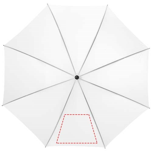 De 23" paraplu schuift automatisch open in slechts één klik. Hij is gemaakt van polyester, een duurzaam materiaal waarmee men door de regen kan lopen zonder nat te worden. Verder heeft de paraplu een metalen schacht, metalen baleinen en een kunststof handvat. De Barry paraplu biedt meerdere mogelijkheden voor het plaatsen van een logo of teksten en is verkrijgbaar in diverse kleuren - Paneel: 270 x 180 mm