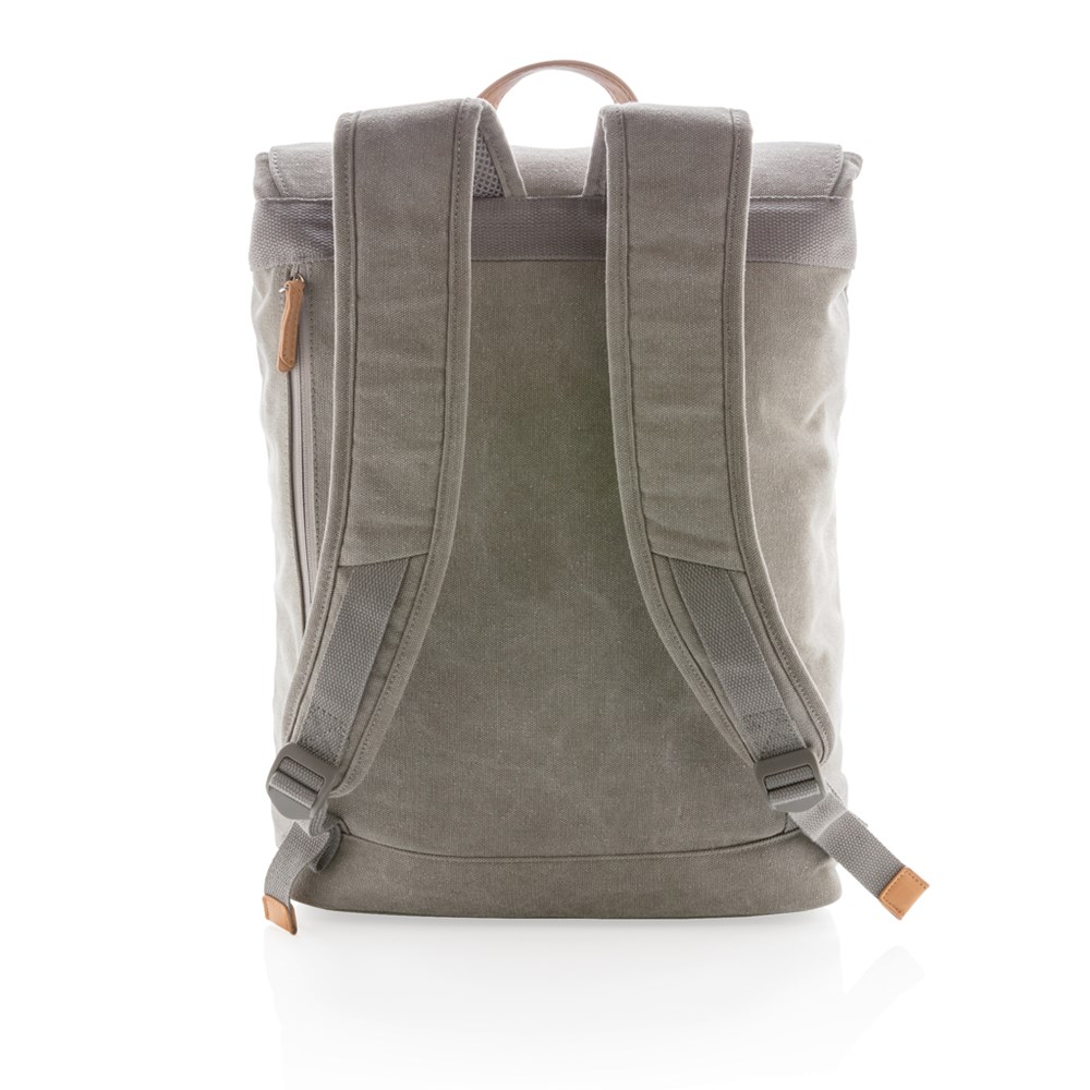 Neem al je essentials mee voor een casual reis in deze duurzame canvas rugzak. Het model is voorzien van een gevoerd gedeelte voor uw laptop tot 15,6". Topsluiting met twee kunstlederen magnetische gespen. PVC-vrij.
