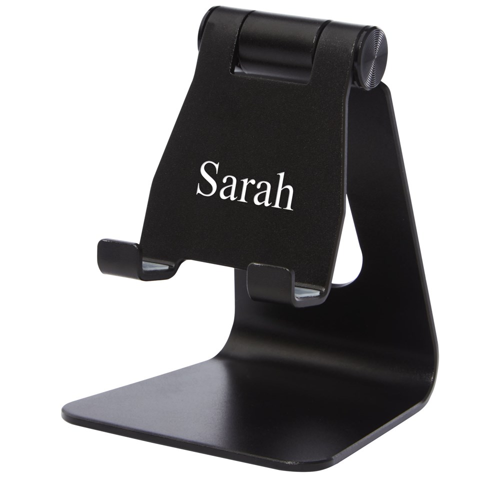 Compacte tablethouder van aluminium. De kijkhoek kan worden aangepast om aan alle behoeften te voldoen, waardoor dit het perfecte accessoire is voor telefonische vergaderingen, uitzendingen, livestreaming of gewoon om een film te kijken. De onderkant is voorzien van antislipmateriaal om verschuiven te voorkomen. Geleverd in een geschenkverpakking van kraftpapier met een kleurrijke sticker.Drukoppervlak: