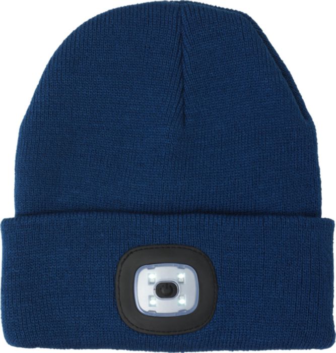 Val op in het donker! Met deze muts van 100% polyacryl inclusief ledlamp aan de voorkant ben je goed zichtbaar in de donkere dagen. Maak de muts af met een eigen ontwerp doormiddel van een label. Het toffe product is een geweldig promotieartikel om jouw bedrijf te laten opvallen. De lamp is oplaadbaar.