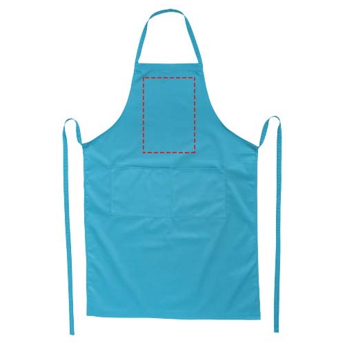 Of je het nu met of zonder logobestelt, het beschermen van kleding tijdens het koken is eenvoudig met het Viera schort. Het schort bestaat uit 240 g/m² twill (65% polyester en 35% katoen), wat het schort dik en stevig maakt, terwijl het toch zacht en comfortabel aanvoelt. In de twee zakken aan de voorzijde kunnen keukenbenodigdheden snel worden opgeborgen en het 1 meter lange strikje maakt dit schort one-size-fits-all. Daarnaast biedt het Viera schort meerdere mogelijkheden voor het toevoegen van een logo.Drukoppervlak: