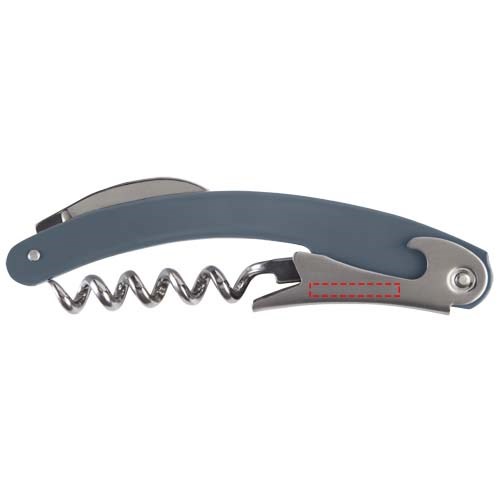 Roestvrijstalen sommeliermes met gekleurde behuizing met een foliesnijder en flesopener.