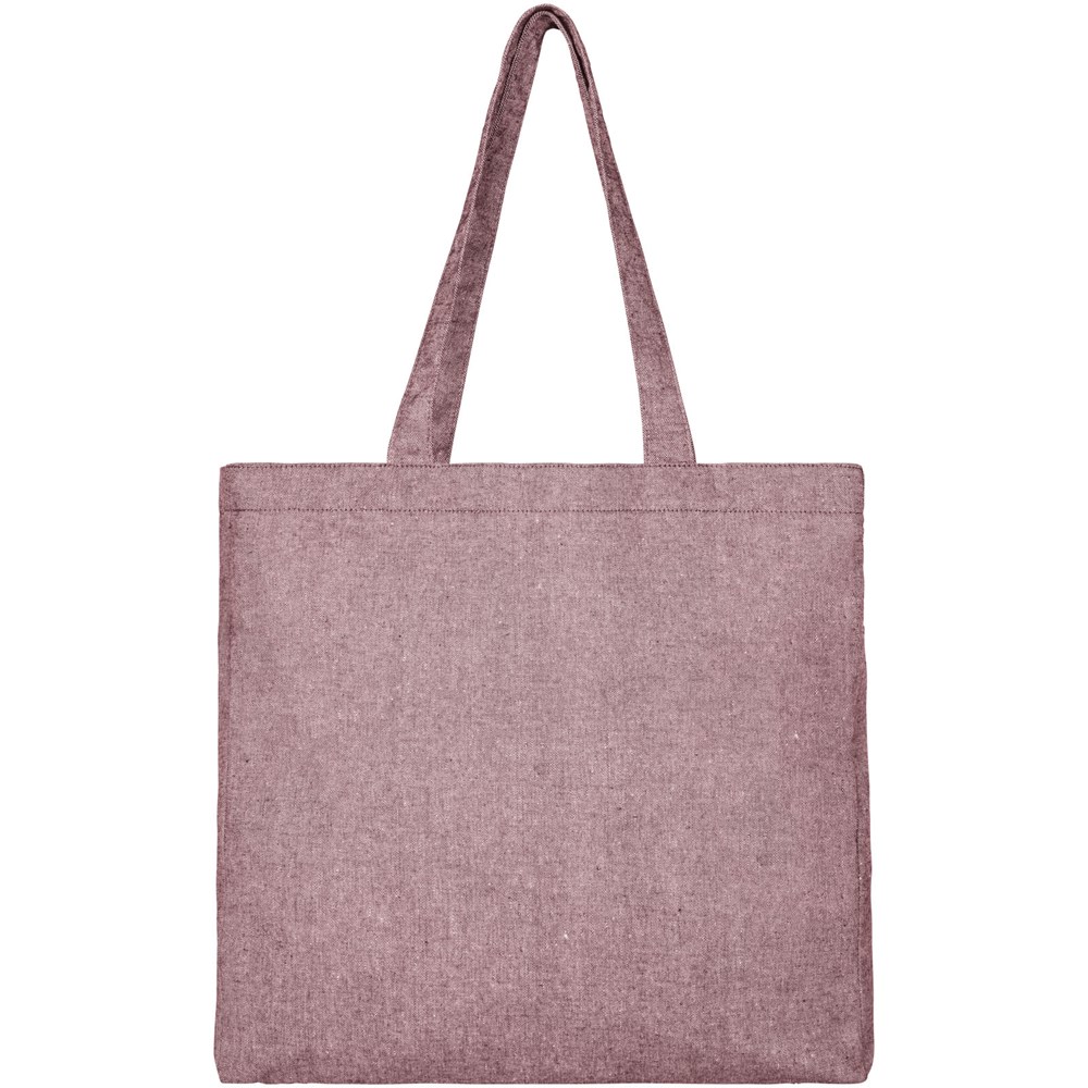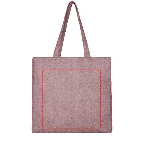 Draagtas gemaakt van 210 g/m² gerecycled katoen polyester mix. Gerecycled katoen wordt vervaardigd uit voor consumenten bestemd afval dat in textielfabrieken tijdens het snijproces wordt geproduceerd. Draagtas met een groot hoofdvak. Voorzien van twee handgrepen met een lengte van 31 cm. Geschikt voor een gewicht tot 10 kg. Er kunnen door de wijze van produceren kleine variaties voorkomen in de kleur van het eigenlijke product. Drukoppervlak: