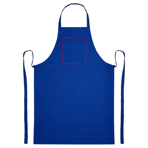 Duurzaam schort van 200 g/m² GOTS gecertificeerd organisch katoen. Beschikt over 2 aangrenzende zakken met een gecombineerde afmeting van 45 x 20 cm en een bandsluiting van 1 meter aan de achterkant. Lengte van de nekband: 55 cm.Drukoppervlak: