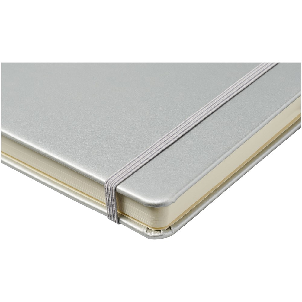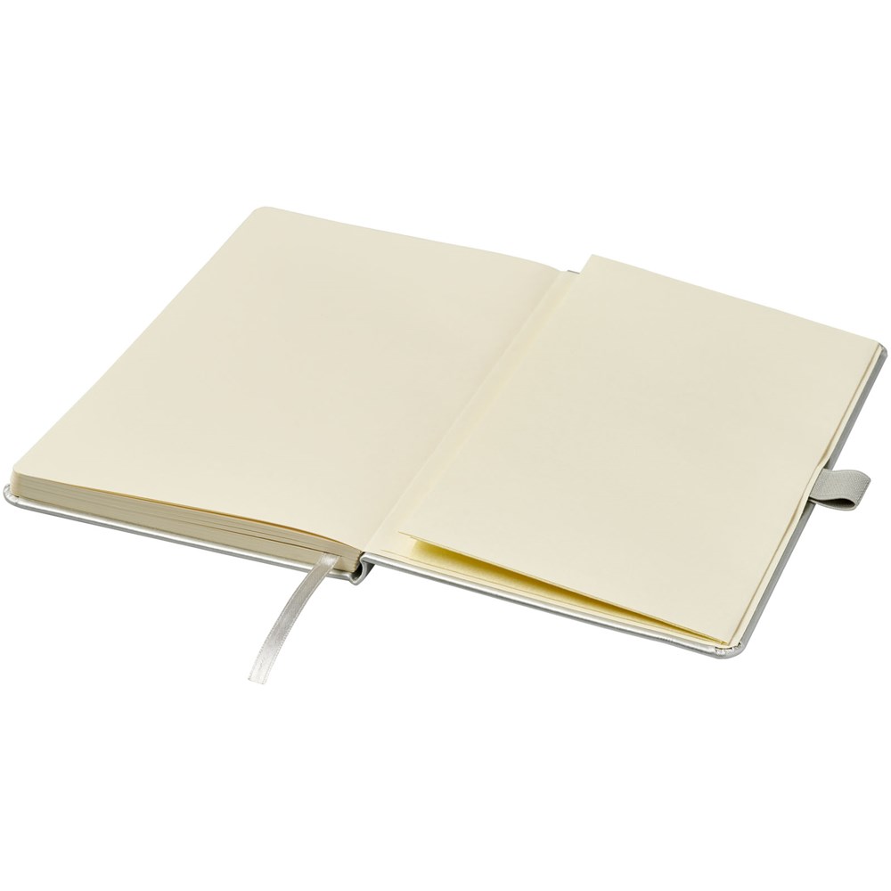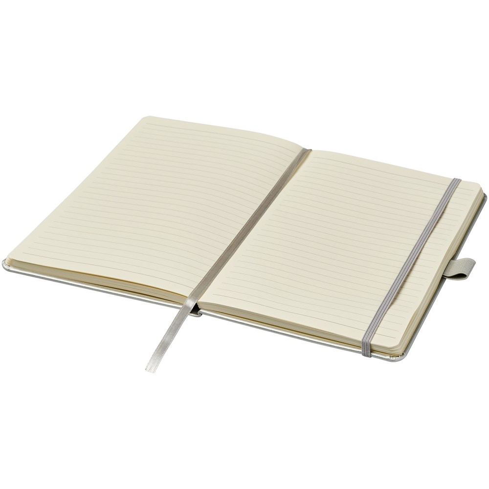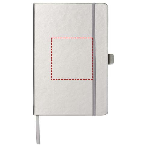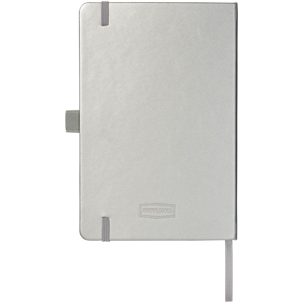 Kunstleren A5 (14,2 cm x 21,4 cm) notitieboek (karton bekleed met leerpapier) met elastische band, leeslint, pennenlus en accordeon-achterzak. Inclusief 96 vellen gelinieerd crèmepapier in 80 g/m2 en wordt aangeboden in een Journalbook witte hoes.Drukoppervlak: