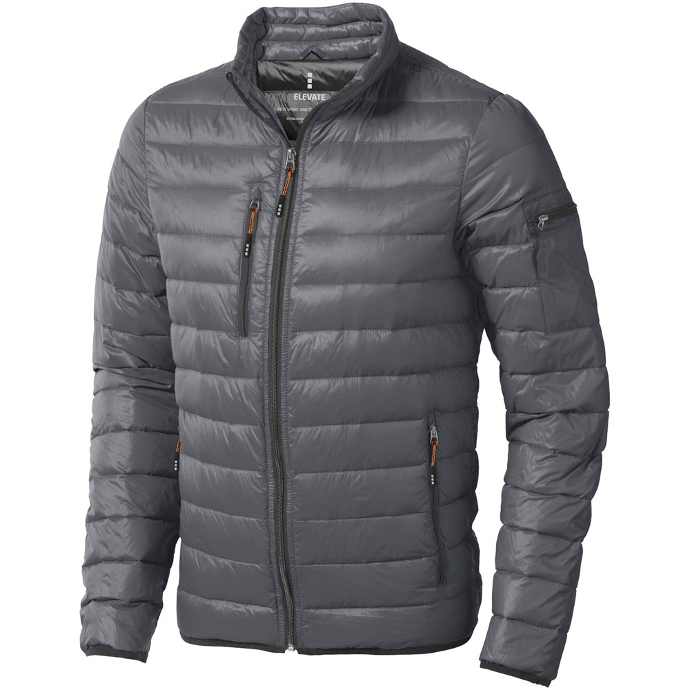Downproof geperste stof. Stormflap aan binnenzijde met kinbescherming. Zak met rits op de mouw. Borstzak met ritssluiting. Steekzakken met rits. Elastische binding. Vrijliggende ritssluiting centraal vóór, met contrastband. 'easy grip' ritstrekker (met tweede set in antraciet). Ophanglus. Transfer maatlabel voor extra comfort.