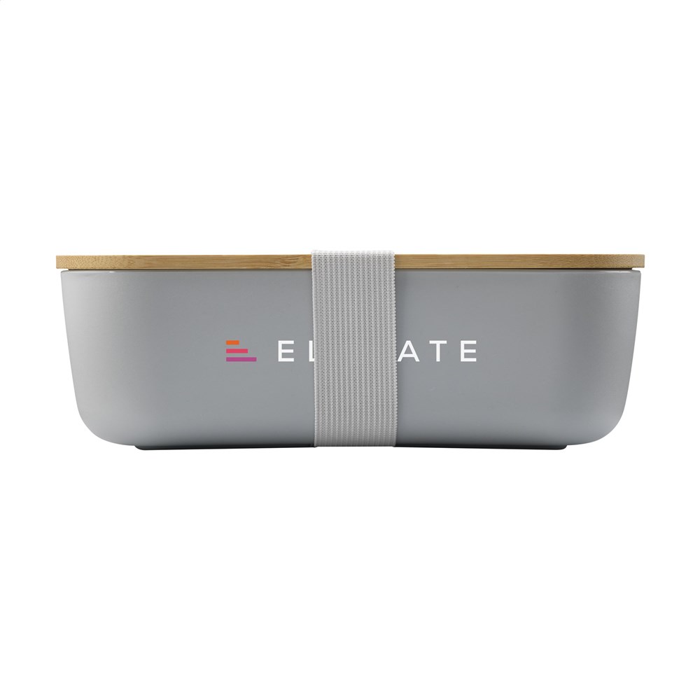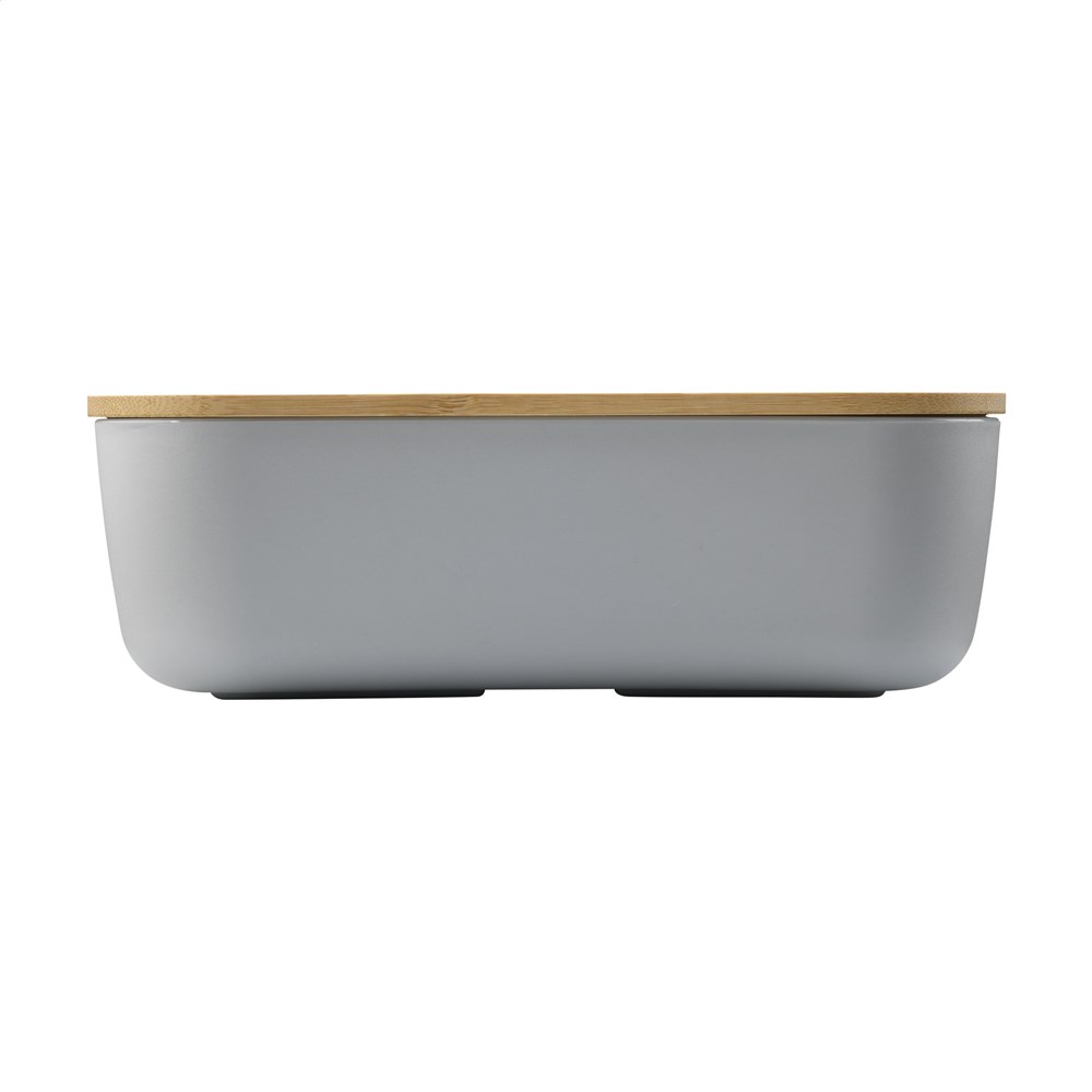 Royale lunchbox van PP kunststof. Het deksel is van natuurlijk bamboe. Inclusief elastische sluitband.