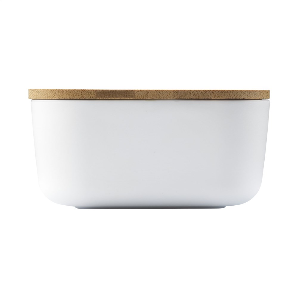 Royale lunchbox van PP kunststof. Het deksel is van natuurlijk bamboe. Inclusief elastische sluitband.