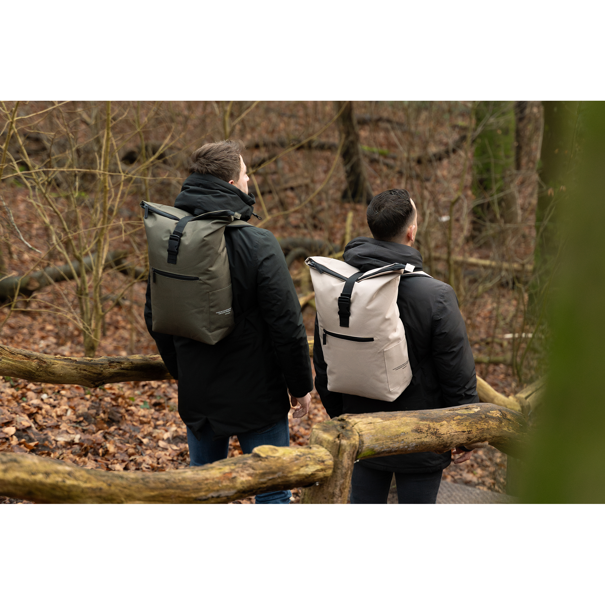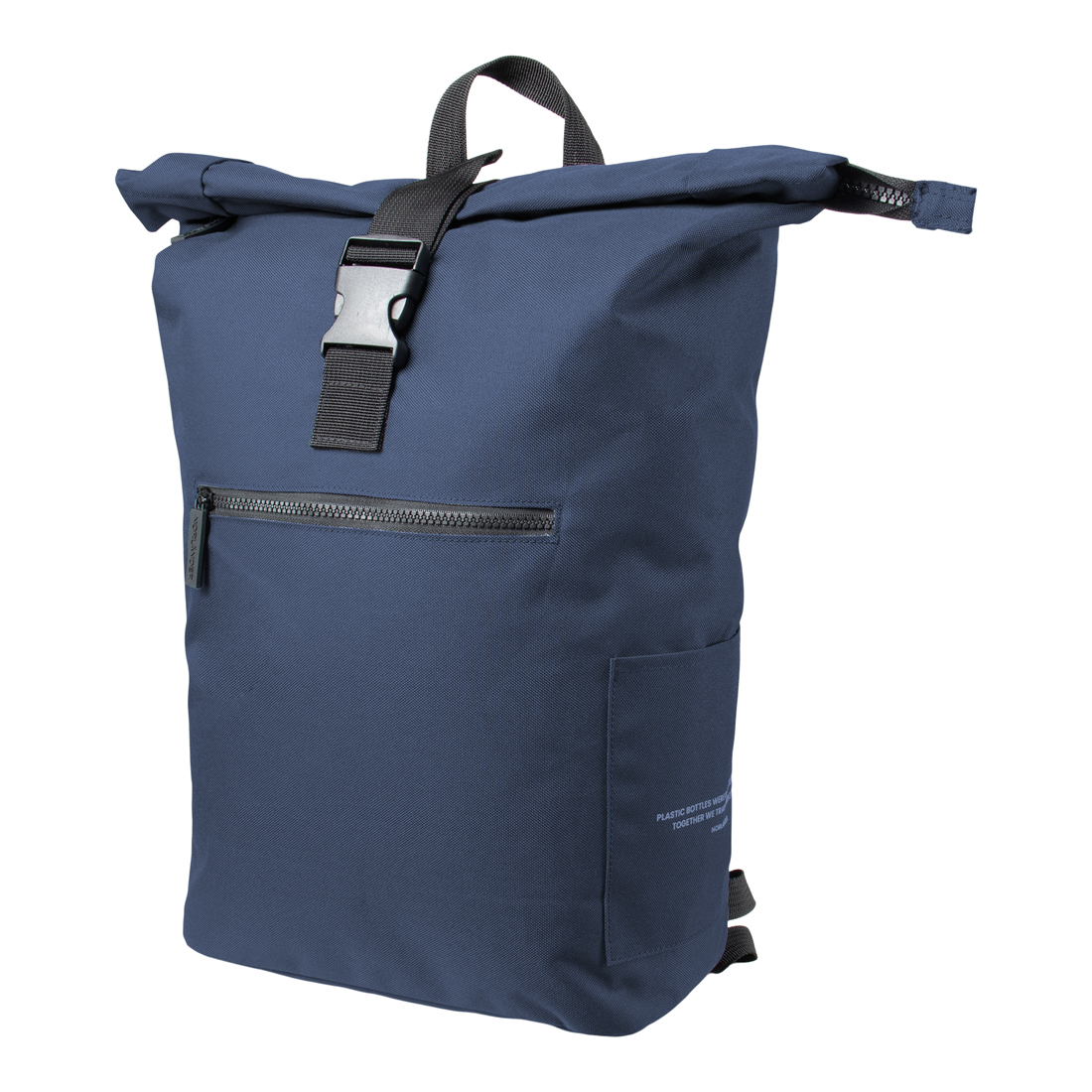 Deze aantrekkelijke Simply Green rugtas blinkt uit doordat deze van RPET polyester is gemaakt. In deze tas zijn maar liefst 10 gerecyclede PET flessen verwerkt. Door de gewatteerde achterzijde en verstelbare schouderbanden, biedt deze tas het nodige draagcomfort. De bovenzijde is af te sluiten met een rits en kan vervolgens opgerold dicht worden gemaakt middels de buckle sluiting. Tot slot is er nog een extra afsluitbaar voorvak en een open zijvak.