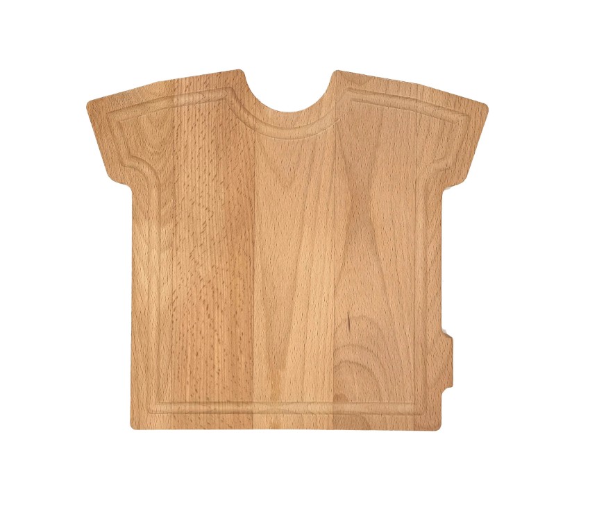 Een beuken plank in de vorm van een T-shirt is een unieke en creatieve manier
