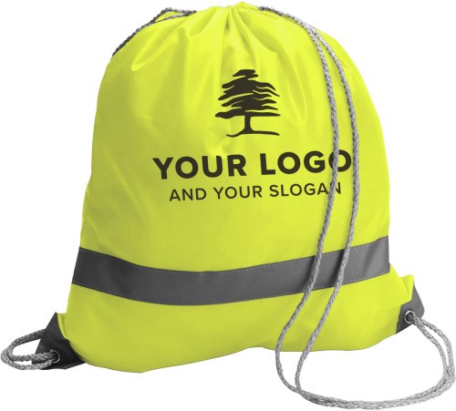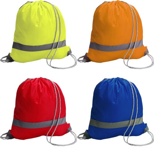 Polyester rugtas (190T), met een reflecterende band en trekkoordsluiting.
