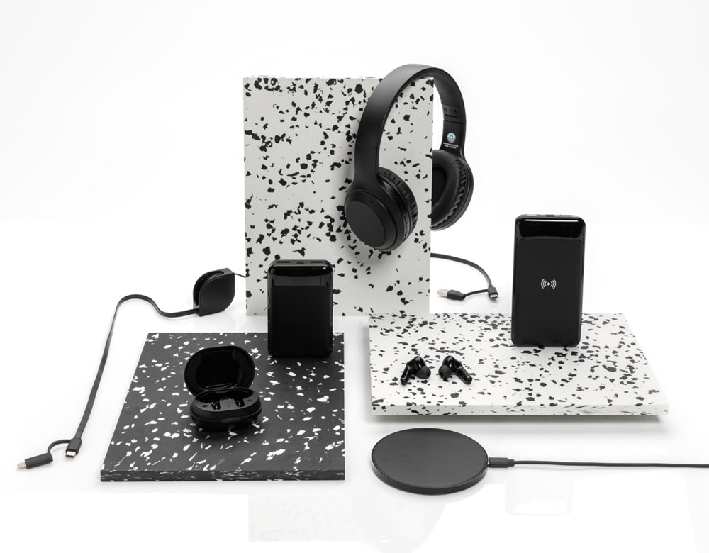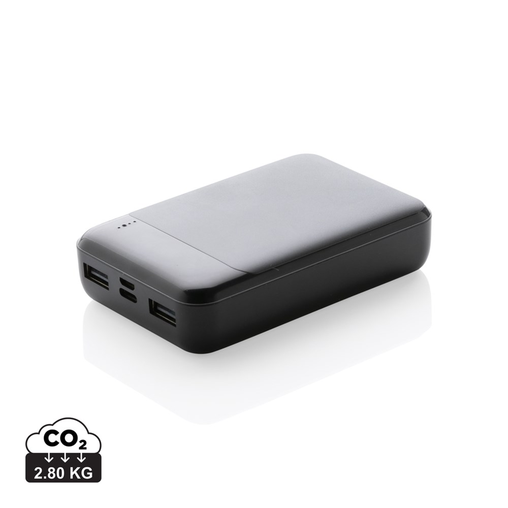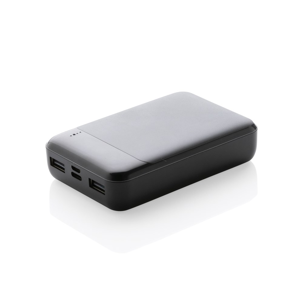 10.000 mAh powerbank in zakformaat waarbij de behuizing is gemaakt van RCS-gecertificeerd gerecycled ABS-plastic. RCS (Recycled Claim Standard) is een norm om de gerecyclede inhoud van een product in de hele toeleveringsketen te verifiëren. RCS is de standaard die wordt gebruikt wanneer een deel van het artikel is gemaakt van gerecyclede materialen. Als de powerbank volledig is opgeladen, heeft u genoeg energie om uw mobiele telefoon tot vijf keer op te laden. De powerbank bevat een hoogwaardige A 10.000 mAh high density lithium-polymeerbatterij . De stroomindicatoren geven het resterende energieniveau aan, zodat u altijd weet wanneer u moet opladen. Micro-USB-input 5V/2A; Type-C-input 5V/2A; USB-output 5V/2A; Artikel en accessoires PVC vrij. Inclusief PVC-vrije oplaadkabel van gerecycled TPE-materiaal.