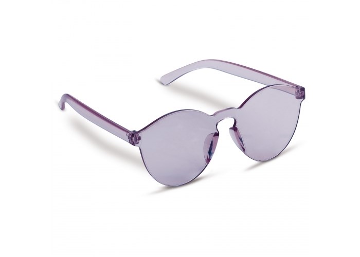 Vrolijke retrostijl zonnebril met uniform pastelkleurig frame en lenzen. De lenzen hebben een UV400 filter.