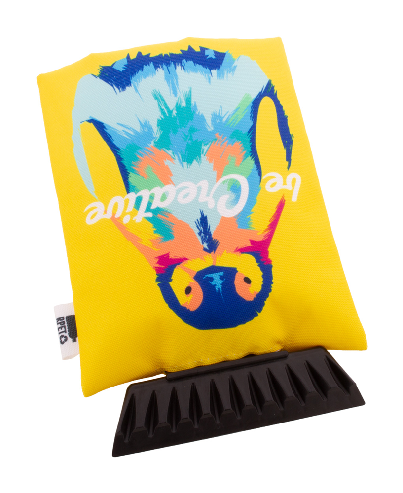 Custom made kunststof ijskrabber met 600D RPET polyester handschoen.
