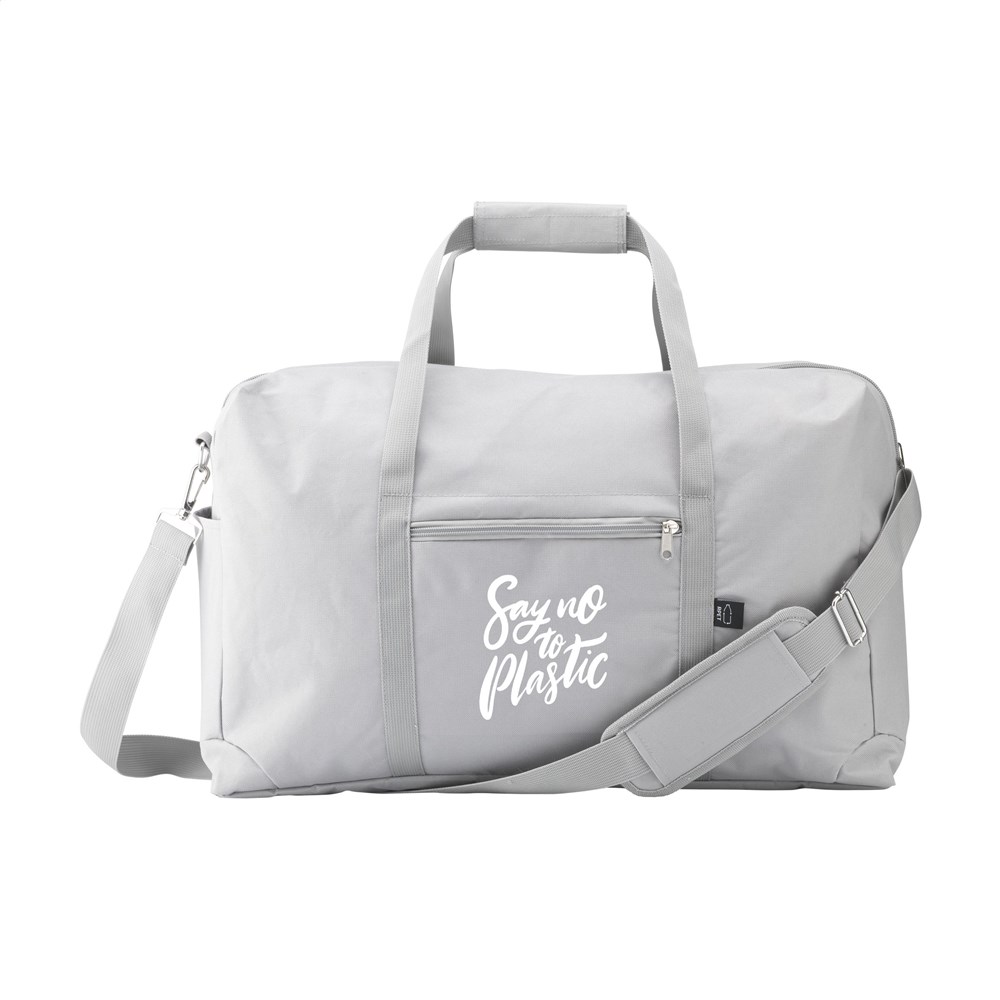 WoW! Praktische weekendtas van 600D RPET (gemaakt van gerecyclede PET-flessen). Indien je de rits helemaal opent, kun je de tas volledig openen en zijn er 2 aparte, ruime ritsvakken. Met de interne pakriemen zet je je bagage strak vast. De tas heeft een separaat laptopvak voor het veilig vervoeren van een laptop tot 13 inch. Daarnaast is de tas keurig afgewerkt met een binnenvoering en voorzien van 2 stevige handgrepen, beschermnoppen en een afneembare, verstelbare schouderband. De buitenzijde van de tas is voorzien van diverse opbergvakken. Inhoud ca. 40 liter.Drukoppervlak: