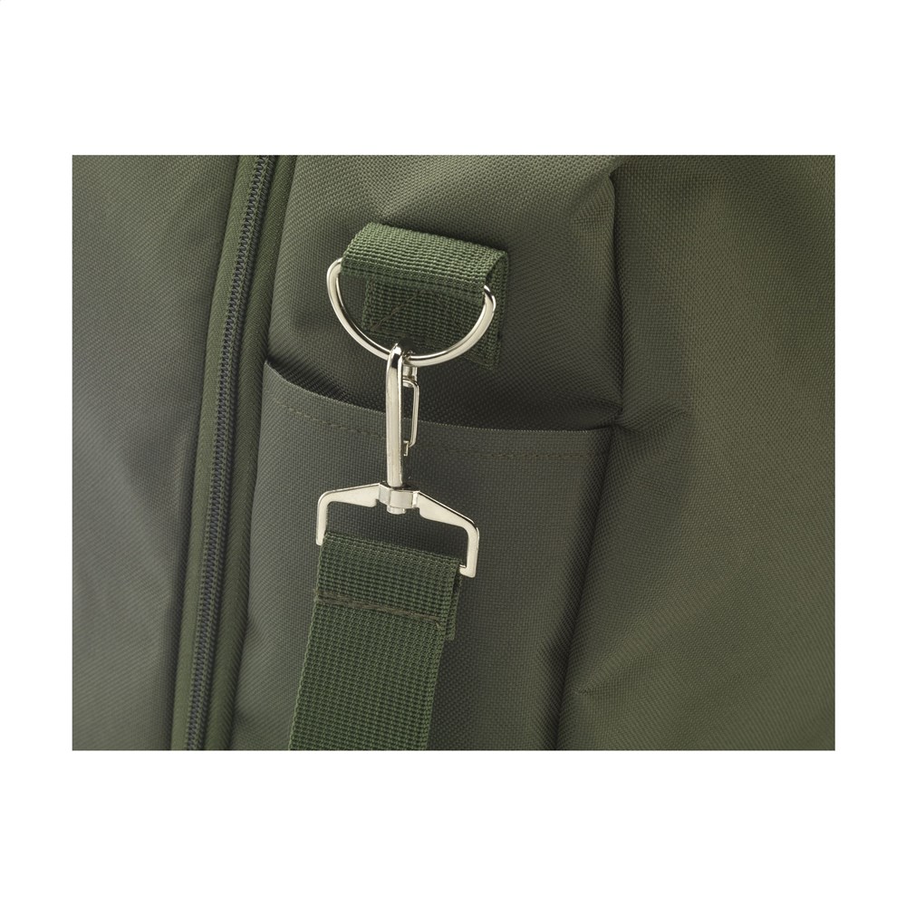 WoW! Praktische weekendtas van 600D RPET (gemaakt van gerecyclede PET-flessen). Indien je de rits helemaal opent, kun je de tas volledig openen en zijn er 2 aparte, ruime ritsvakken. Met de interne pakriemen zet je je bagage strak vast. De tas heeft een separaat laptopvak voor het veilig vervoeren van een laptop tot 13 inch. Daarnaast is de tas keurig afgewerkt met een binnenvoering en voorzien van 2 stevige handgrepen, beschermnoppen en een afneembare, verstelbare schouderband. De buitenzijde van de tas is voorzien van diverse opbergvakken. Inhoud ca. 40 liter.Drukoppervlak: