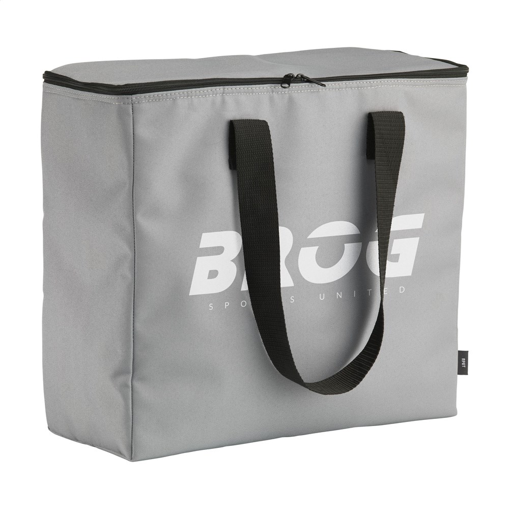 WoW! Grote, stevige koeltas met ritssluiting en handgrepen. Gemaakt van 600D RPET polyester; gerecycled materiaal van PET-flessen en textielvezels. Met enorm veel opbergruimte. Er passen maar liefst 8 flessen van 1,5 liter in deze koeltas. Ook geschikt voor flessen tot 2 liter.Drukoppervlak: