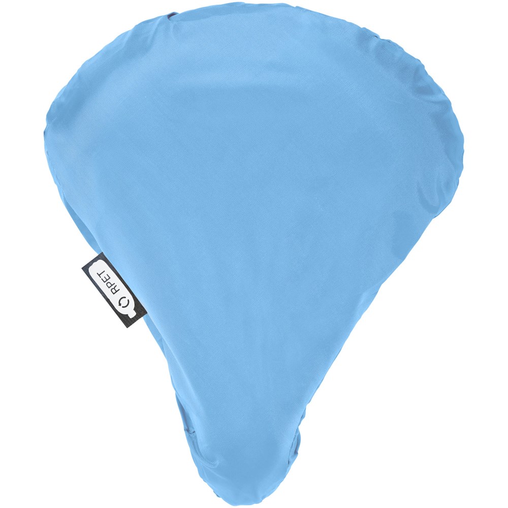 Herbruikbare, lichtgewicht fietszadelhoes gemaakt van gerecycled pet met elastische band die op de meeste fietszadels past.