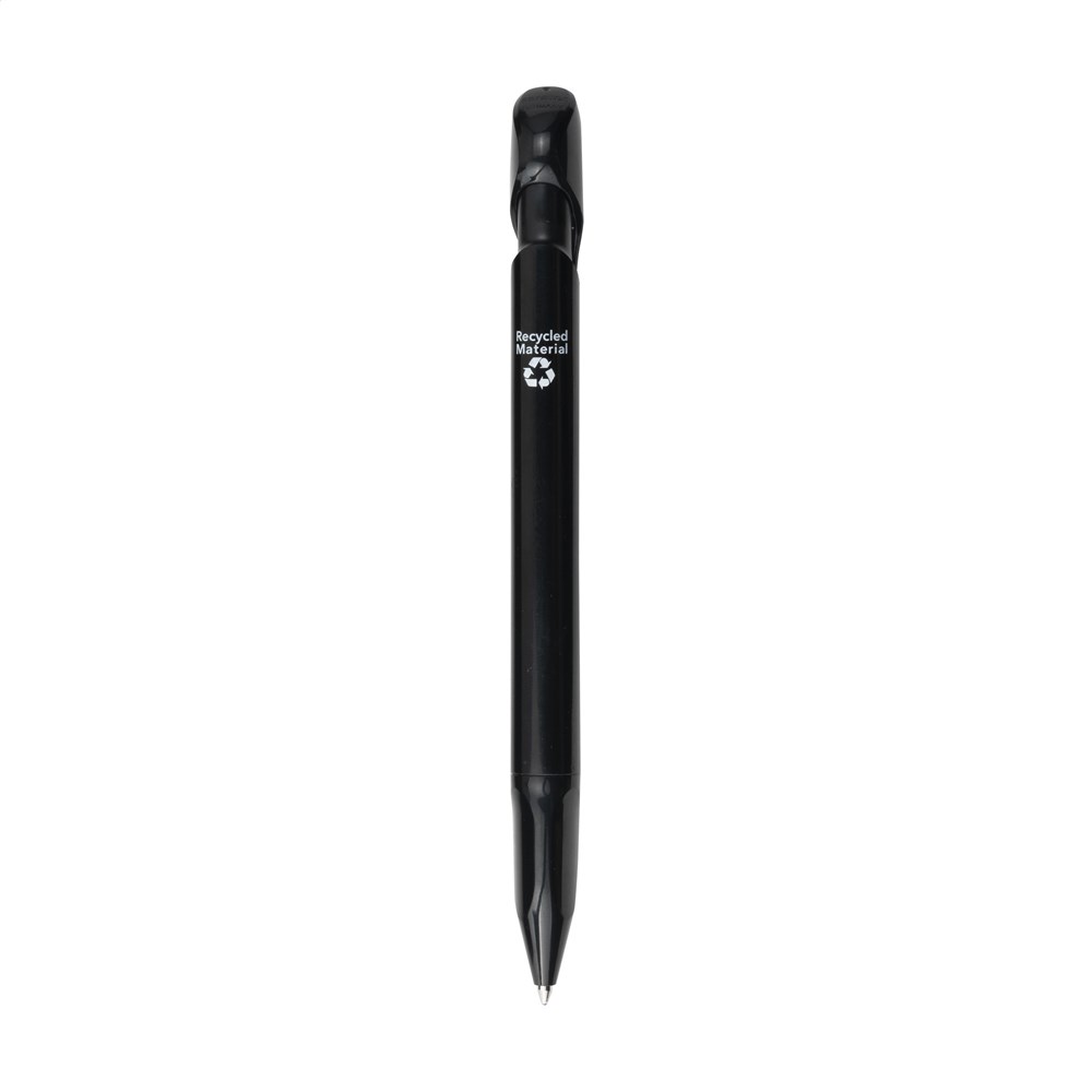 Blauwschrijvende balpen van het merk Senator®. Gemaakt van 95% R-ABS gerecycled materiaal en mooi gepolijst. De pen heeft een opvallend design door de bijzondere clip en het doordachte puntstuk met ergonomische grip. Made in Germany. Lichte oneffenheden in het oppervlak van het gerecyclede materiaal zijn mogelijk.