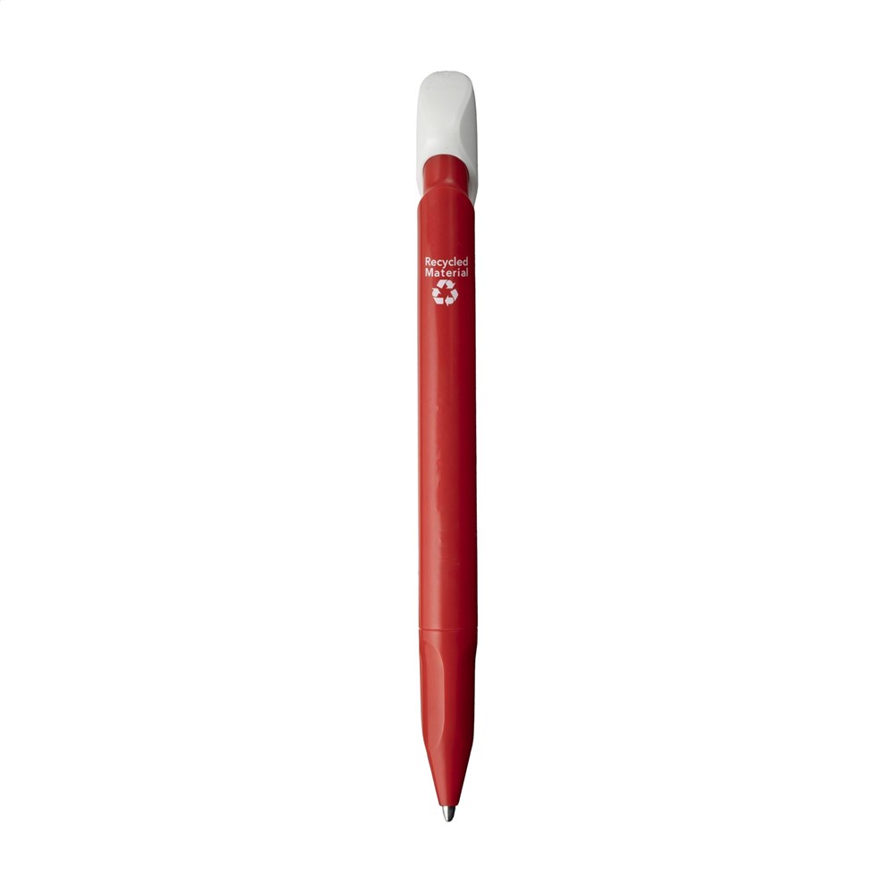 Blauwschrijvende balpen van het merk Senator®. Gemaakt van 95% R-ABS gerecycled materiaal en mooi gepolijst. De pen heeft een opvallend design door de bijzondere clip en het doordachte puntstuk met ergonomische grip. Made in Germany. Lichte oneffenheden in het oppervlak van het gerecyclede materiaal zijn mogelijk.
