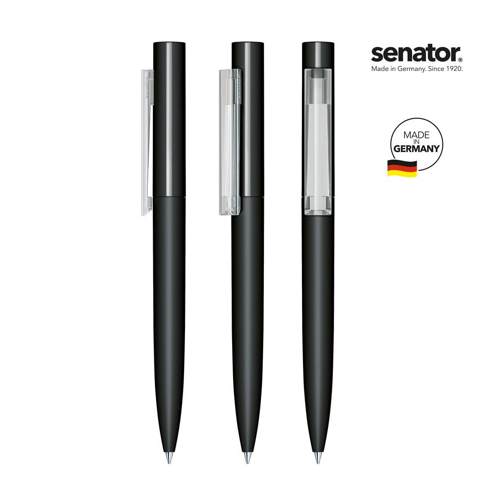 senator® Headliner Softtouch Draaibalpen, Balpen met draaimechaniek, Fluweelzachte soft touch houder, glanzend polished bovenstuk en transparante clip, senator® magic flow G2 vulling (1.0 mm)Schrijfkleur: blauw of zwart