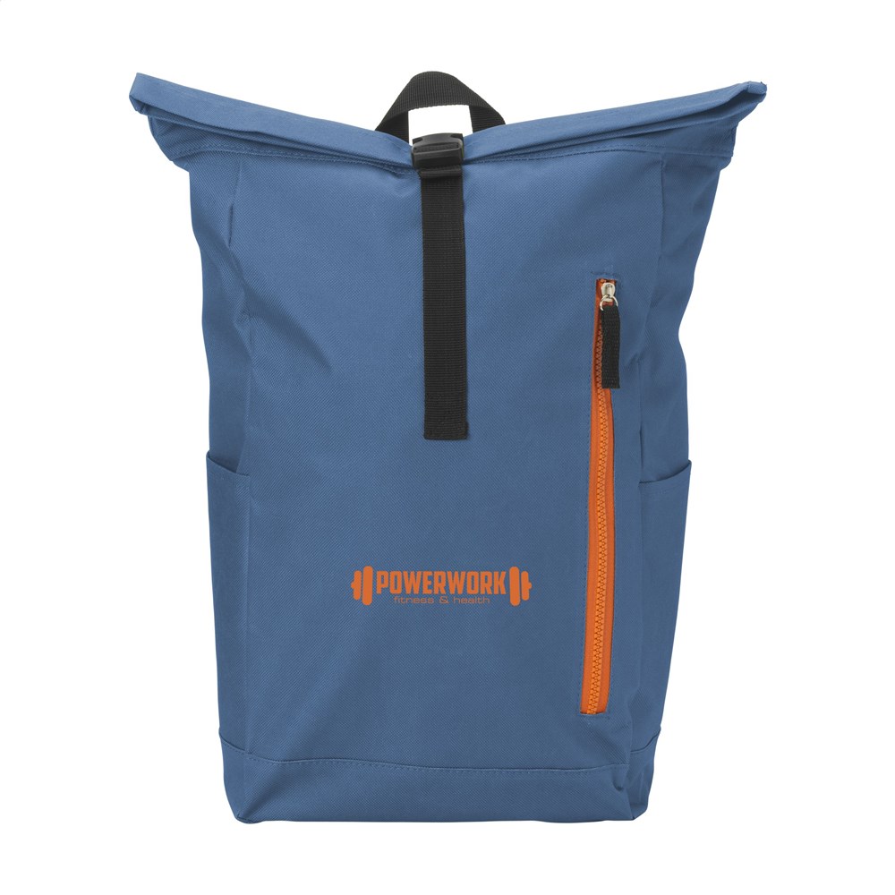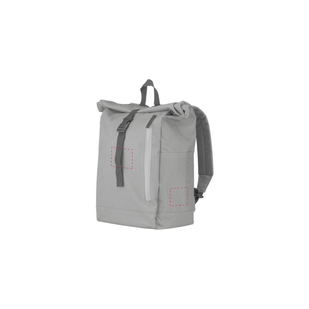 Stoere, praktische urban rugzak van sterk 600D polyester met waterbestendige PVC binnenzijde, gedeeltelijk nylon gevoerd. De rugzak heeft één groot binnenvak, een insteekvak aan beide zijdes en een groot ritsvak aan de voorzijde. Met foam rugzijde voor meer draagcomfort, gewatteerde, verstelbare schouderriemen en draaglus. Met oprolbare sluiting en handig kliksysteem. De perfecte tas voor dagelijks gebruik. Inhoud ca. 18 liter.Drukoppervlak: